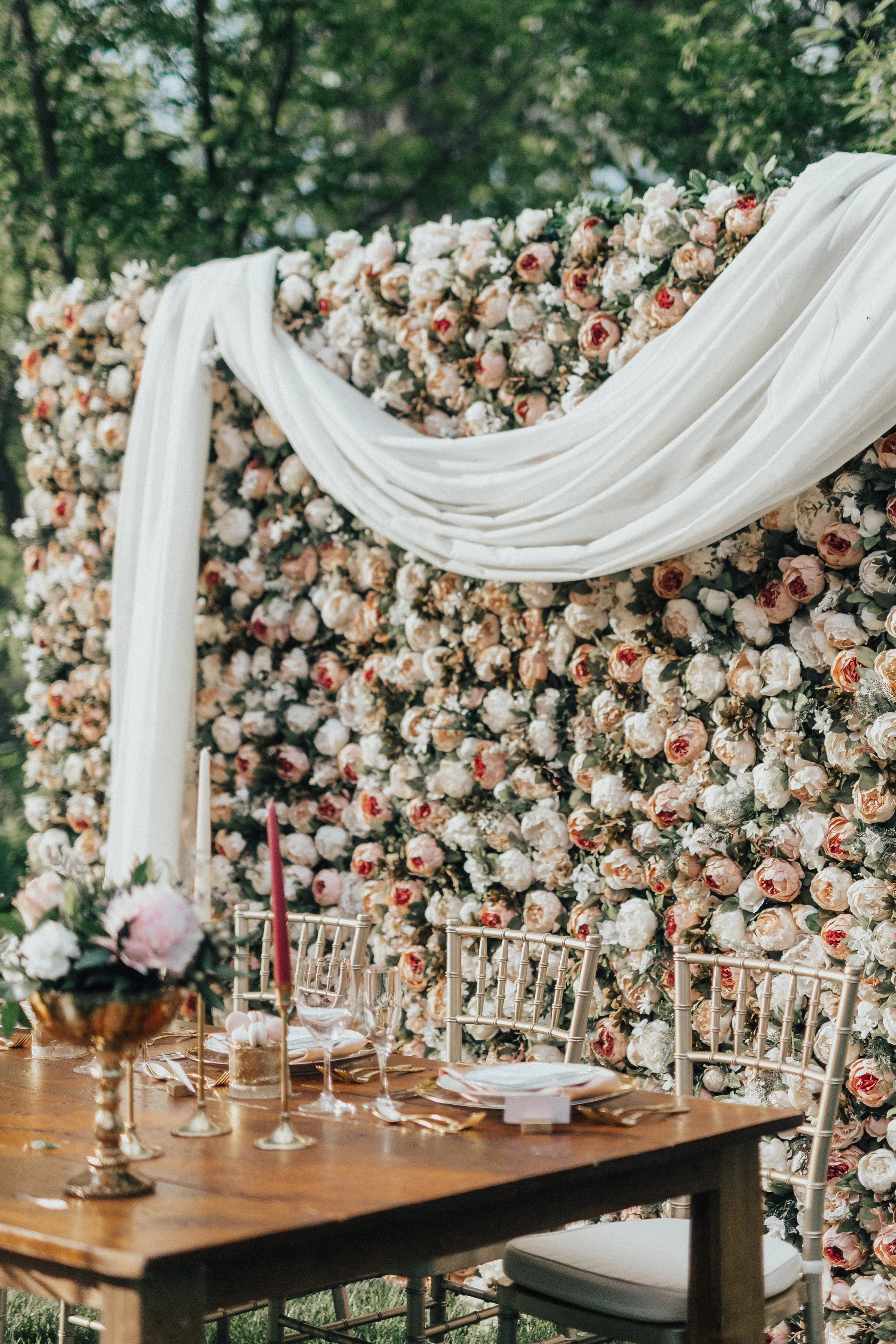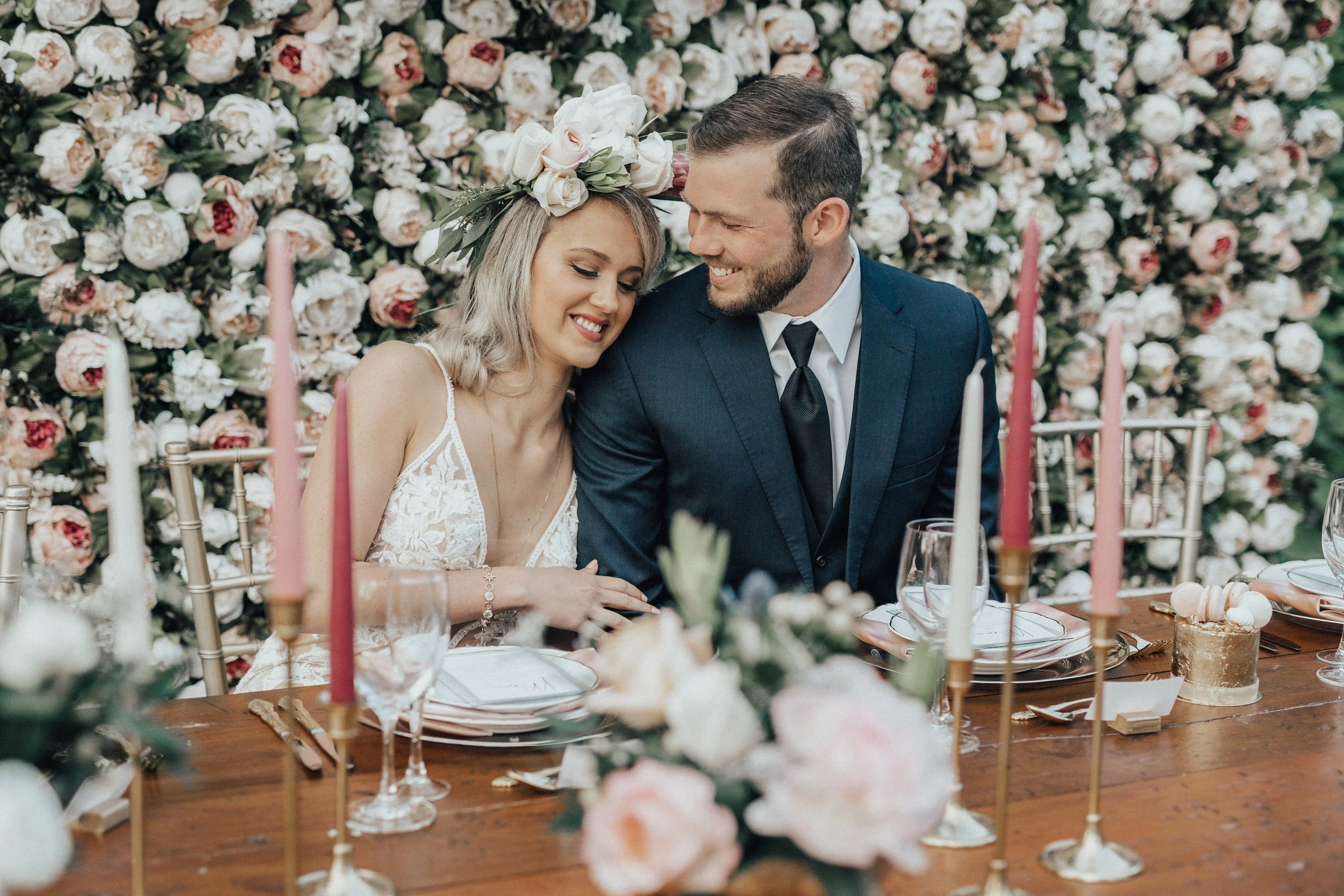 We collaborated with a team of talented wedding vendors to create this editorial, and loved working with a theme that brought rustic romance. We focused our attention on a classic, romantic theme that is sure to capture the hearts of many with the inviting colour scheme, rustic finishes, and of course the gorgeous full-floral wall backdrop.