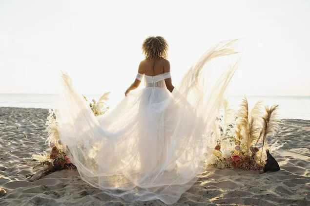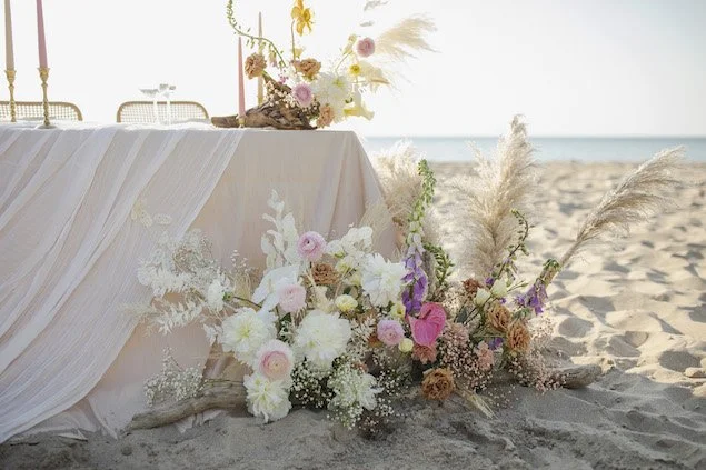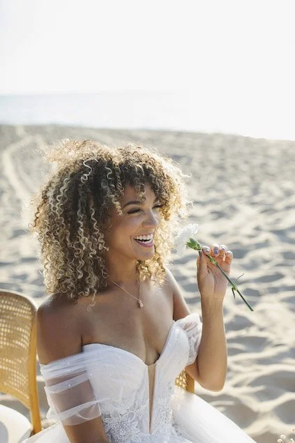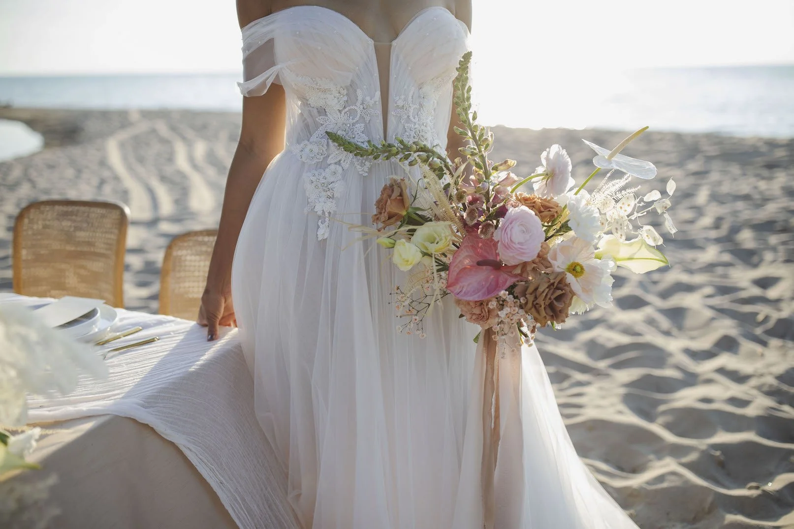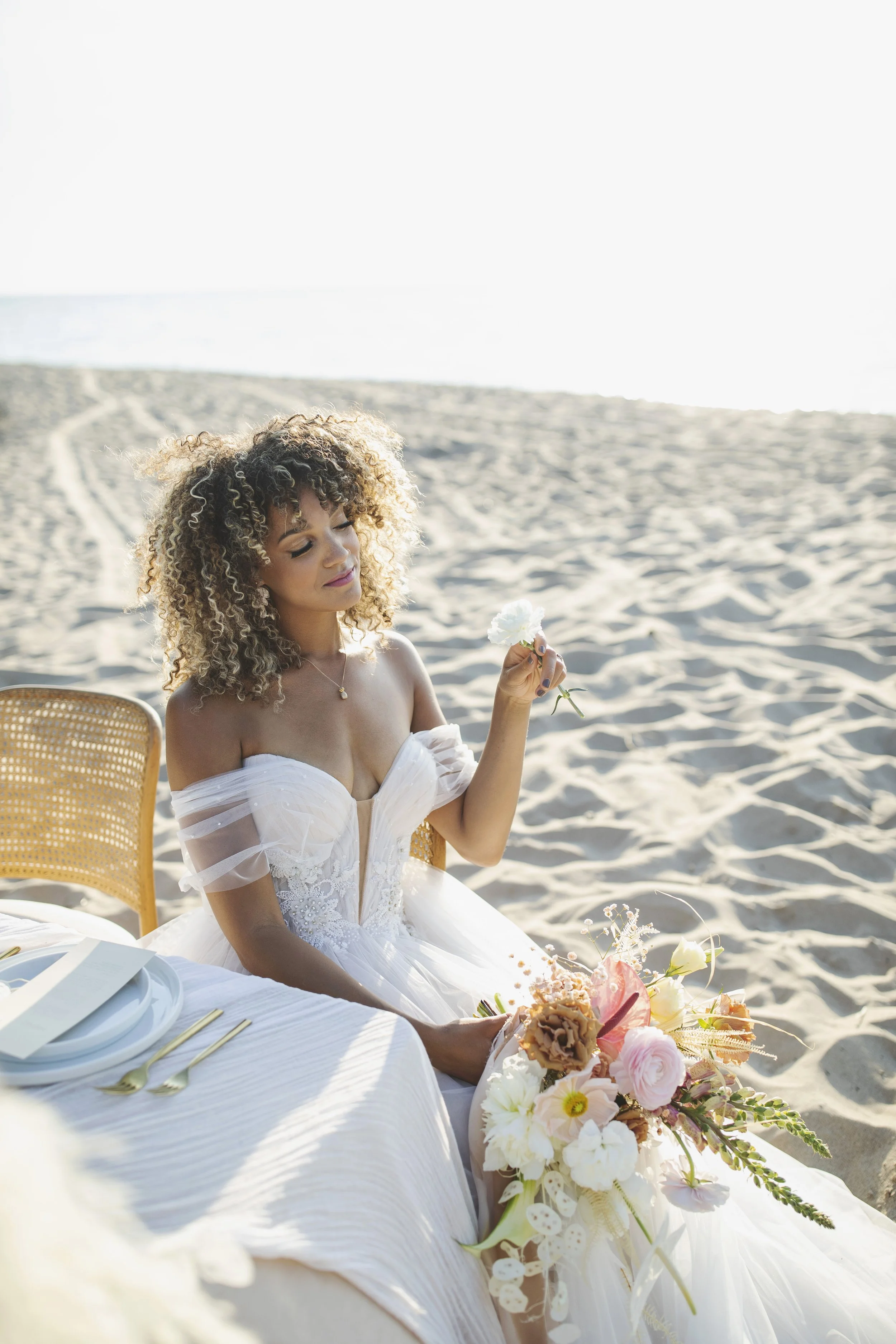 This editorial features simplistic detail, to bring focus to the stunning beach setting, breathtaking floral design, and of course, our beautiful bride in her luxe wedding gown.