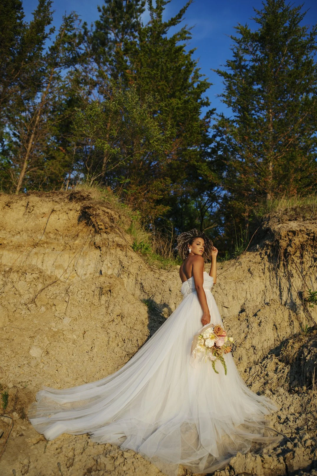 This editorial concluded with a literal glow, as our bride was positioned on a rocky sand dune to pose in that lush evening sunshine. This sweet shoot brings the golden hour magic.