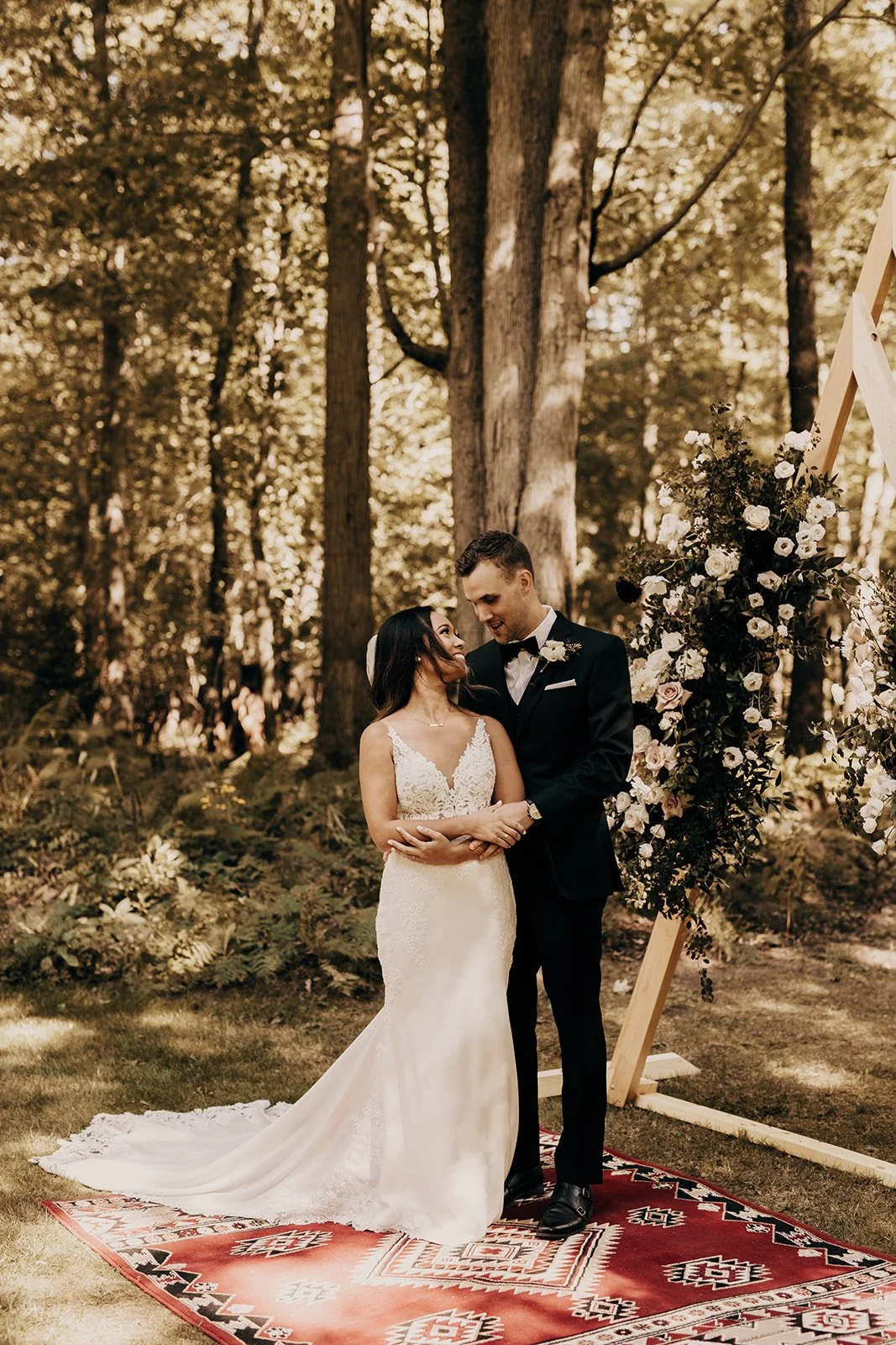 Wedding Planner Kassia Tjia Events | Photographer Maria Denomme Photography | Videographer Amotion Films | Venue Fernwood Hills | Floral Designer Tania Floral | Arch & Rug Rental Boho Weddings | Baker Sticks & Scones | Officiant Tori Taylor; Something New Officiant | Live Musician Narine Music | Makeup Artist Makeup by Emily Franze | Hair Stylist Hair by Sam | Wedding Gown Designer Stella York | Accessories Olive & Piper