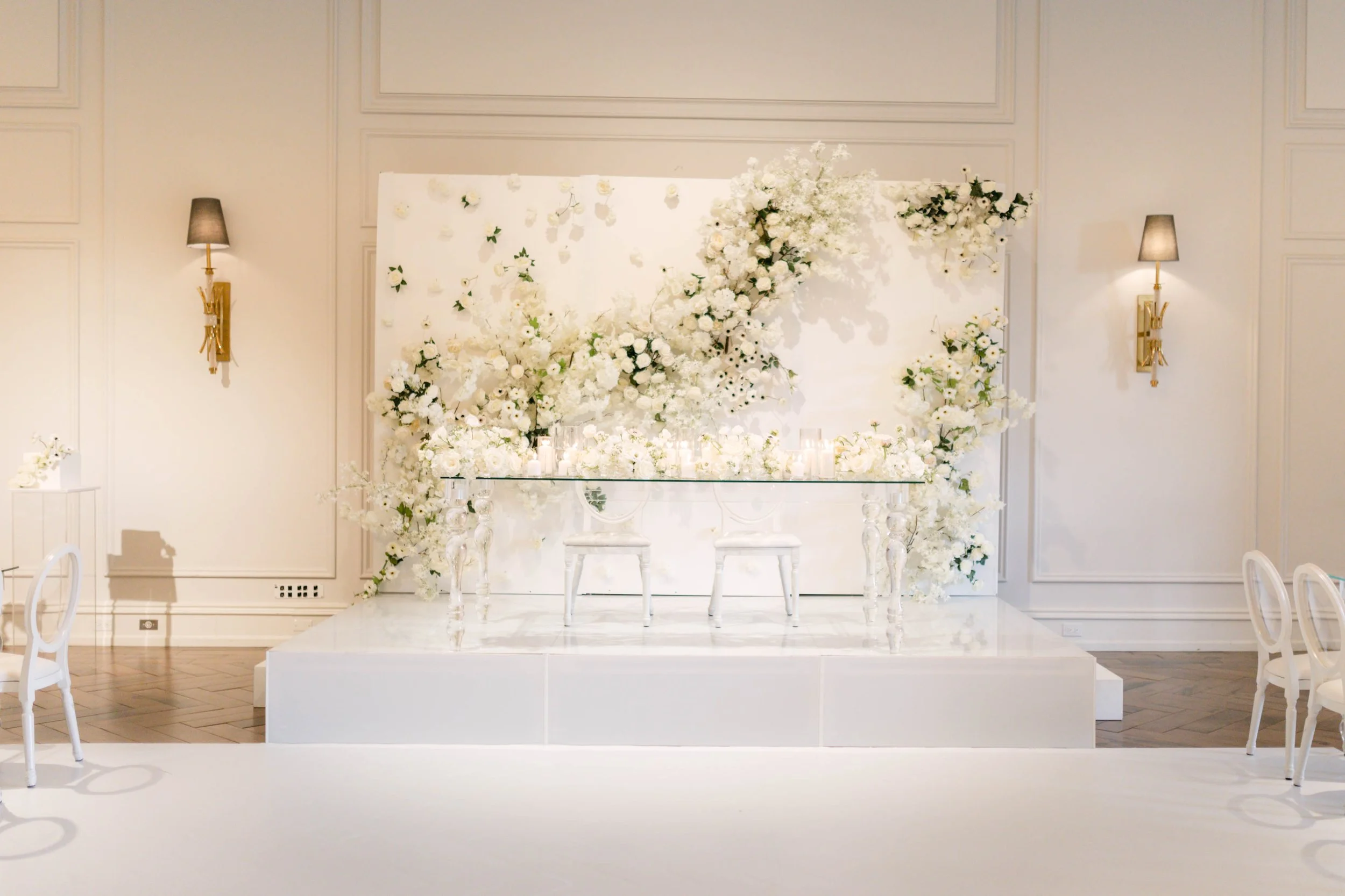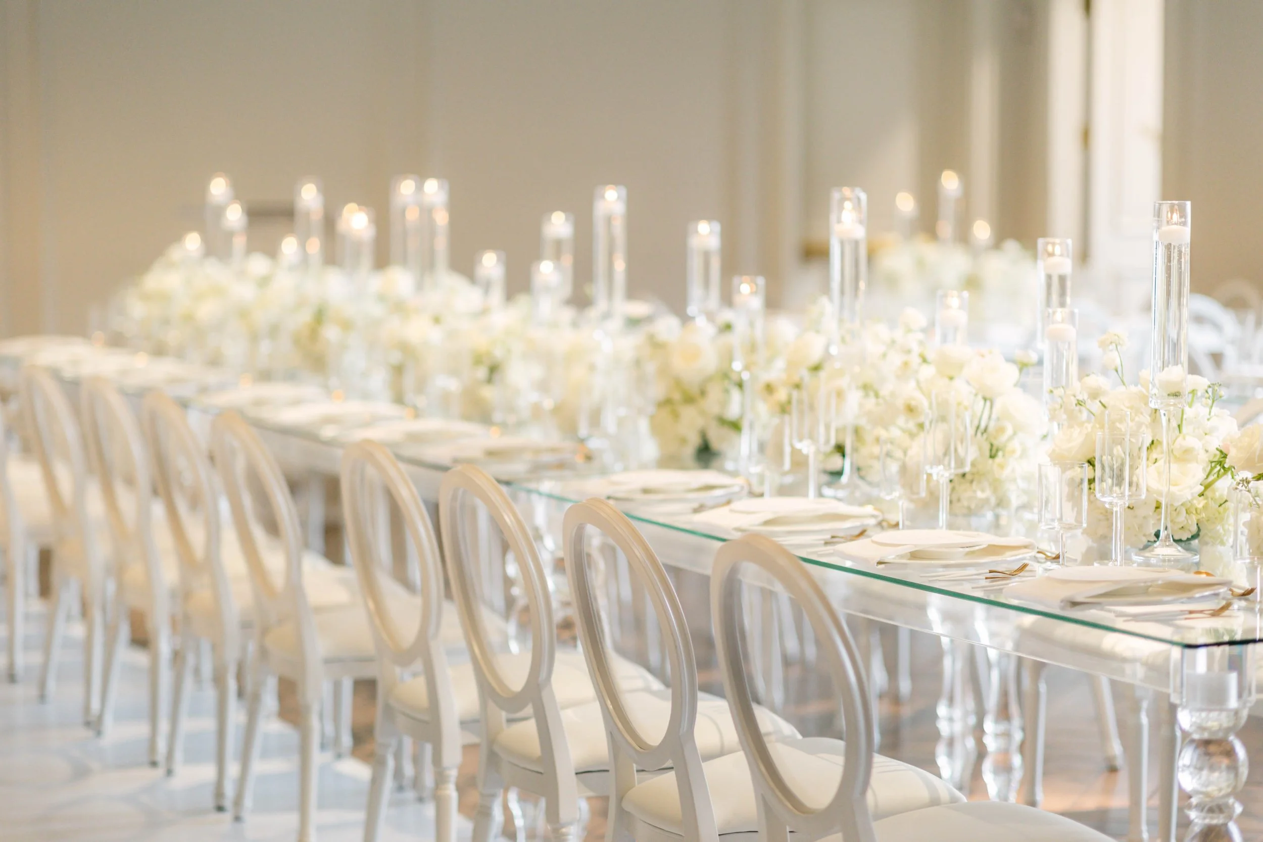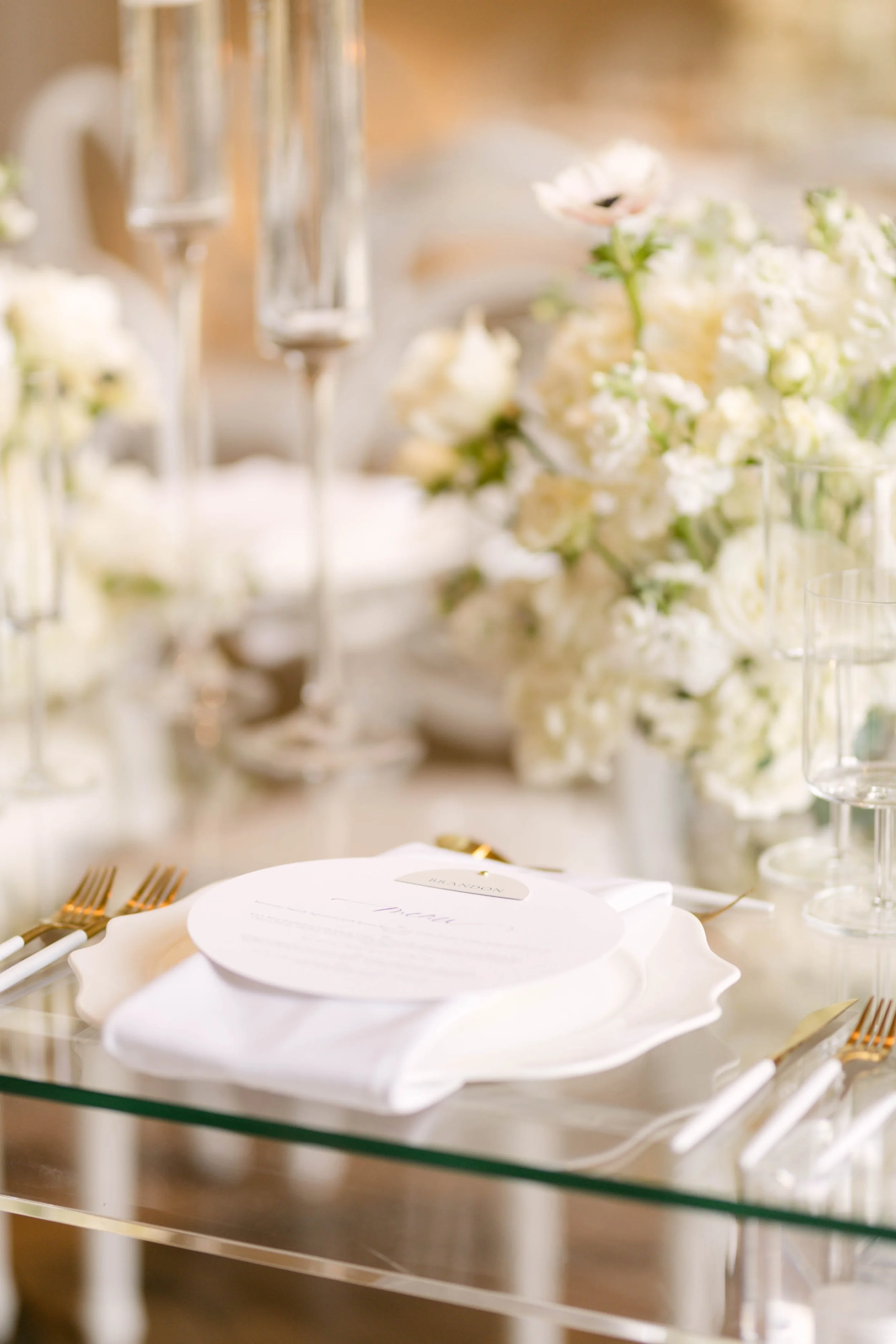 Our vision for Lisa & Brock’s wedding design came from a place of opulence and minimalism. Through bringing intentional furniture and small detail pieces together, we were able to achieve a truly elegant and unique design.